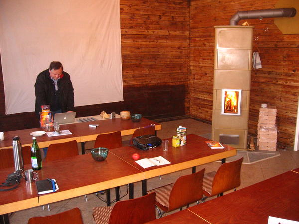 Der Saal nur teilweise saniert, trotzdem ist es beim Seminar schon gemütlich!